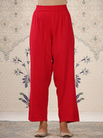 Ode by House of Pataudi Grey & Red Floral Printed Notched Neck Kurta With Palazzos - M