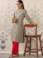 Ode by House of Pataudi Grey & Red Floral Printed Notched Neck Kurta With Palazzos Product Details Grey & red printed Kurta with Palazzo...