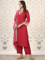 Ode by House of Pataudi Women Ethnic Motifs Yoke Design Regular Thread Work Kurta with Trousers & With Product Details Pink yoke design Kurt...