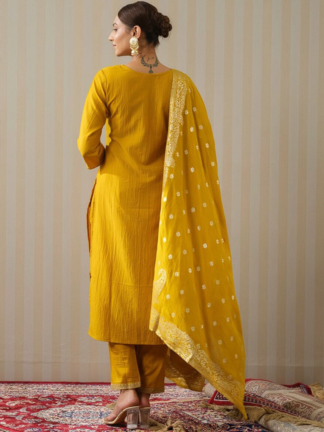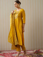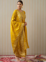 Ode by House of Pataudi Yellow Ethnic Motifs Straight Kurta & Trousers With Dupatta