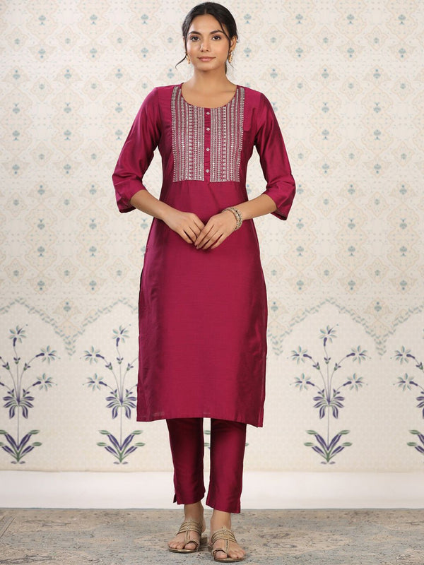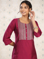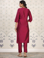 Ode by House of Pataudi Yoke Design Embroidered Kurta with Trousers Product Details Magenta embroidered Kurta with TrousersKurta design: Yoke ...