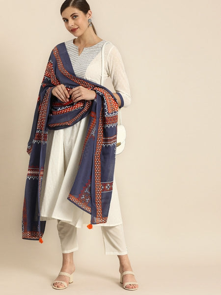 Anouk Women White Woven Design Kurta with Trousers & Dupatta