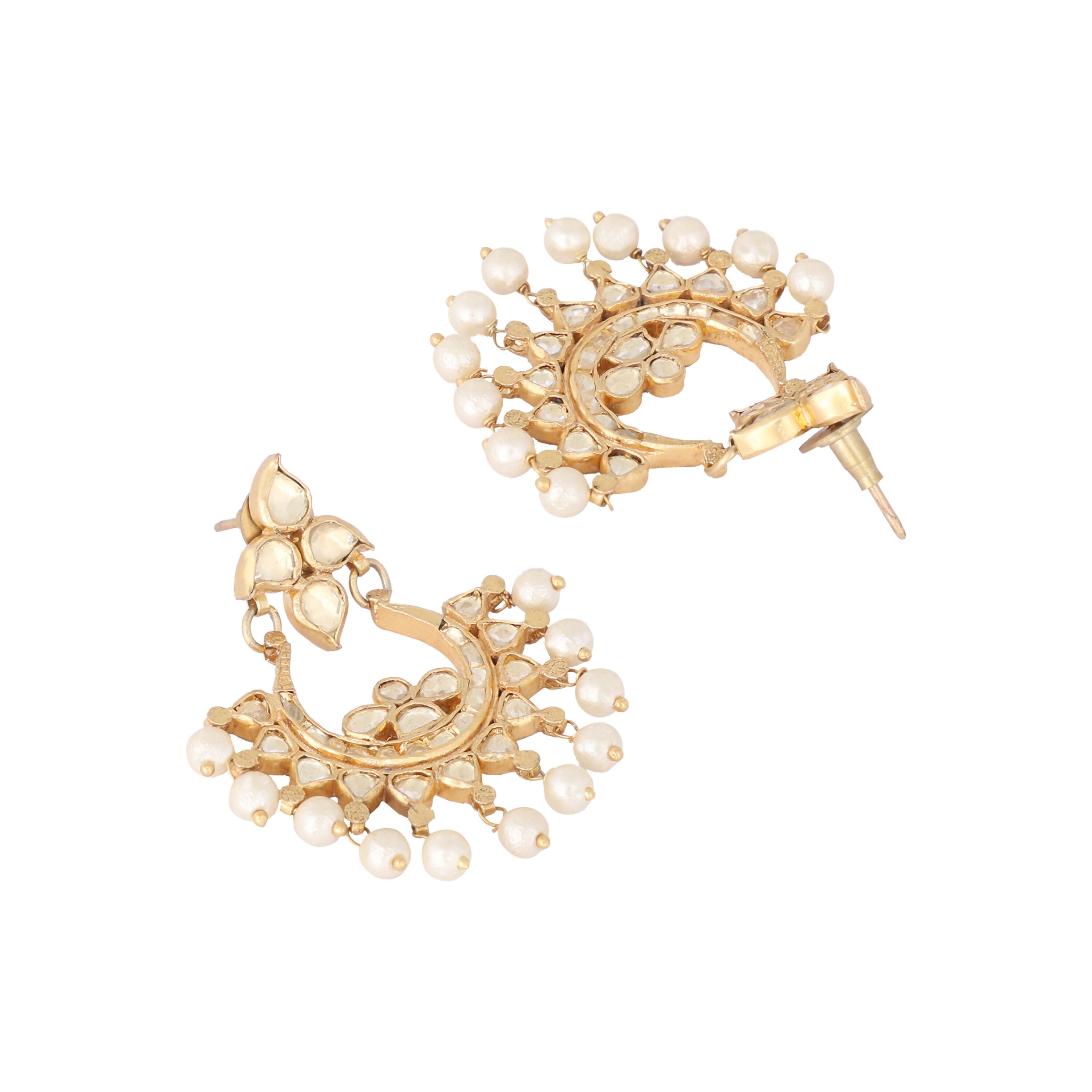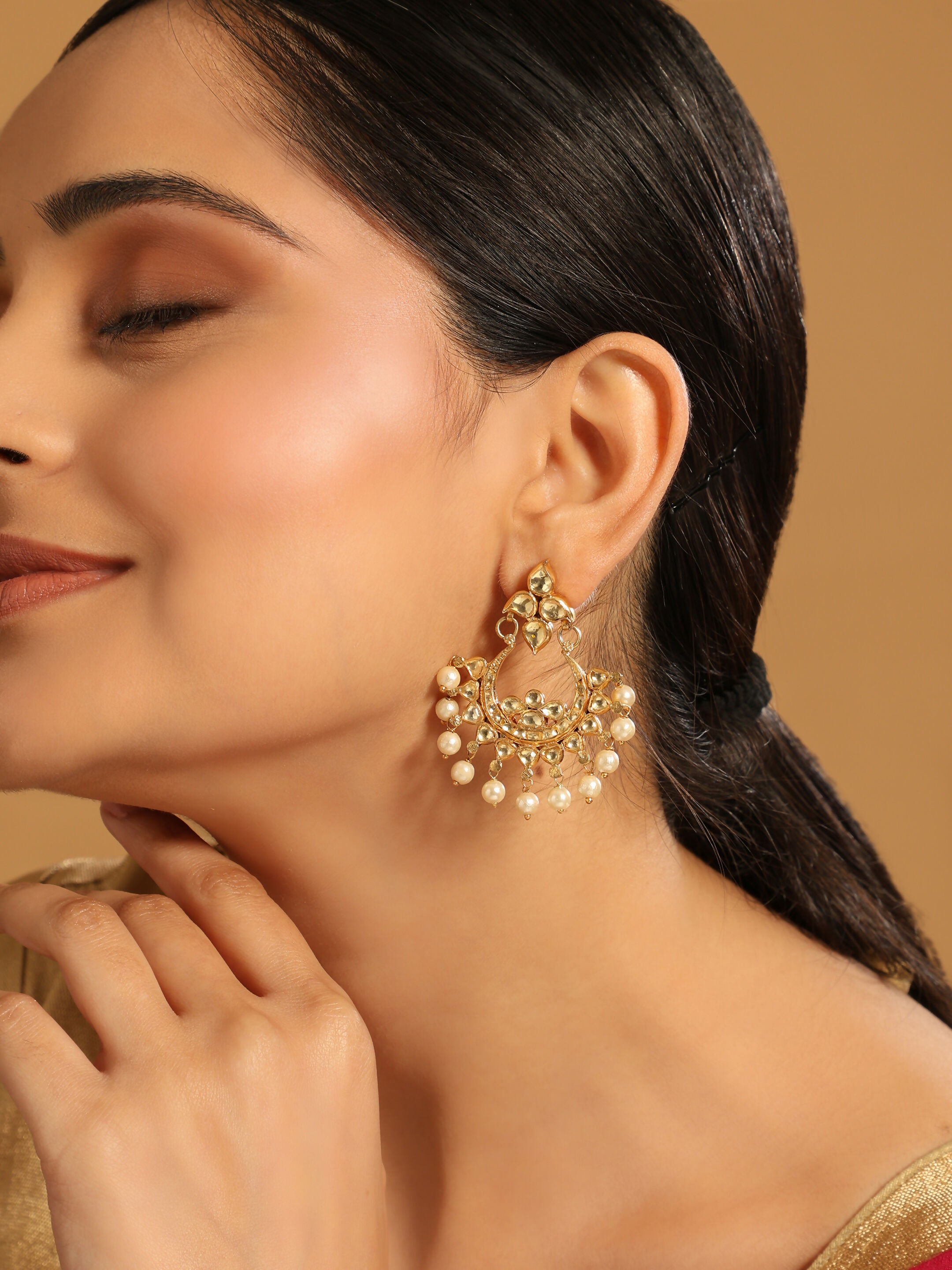 Nuyug 18k Gold-Plated American Diamonds Studded Contemporary Shaped Dangler Earrings