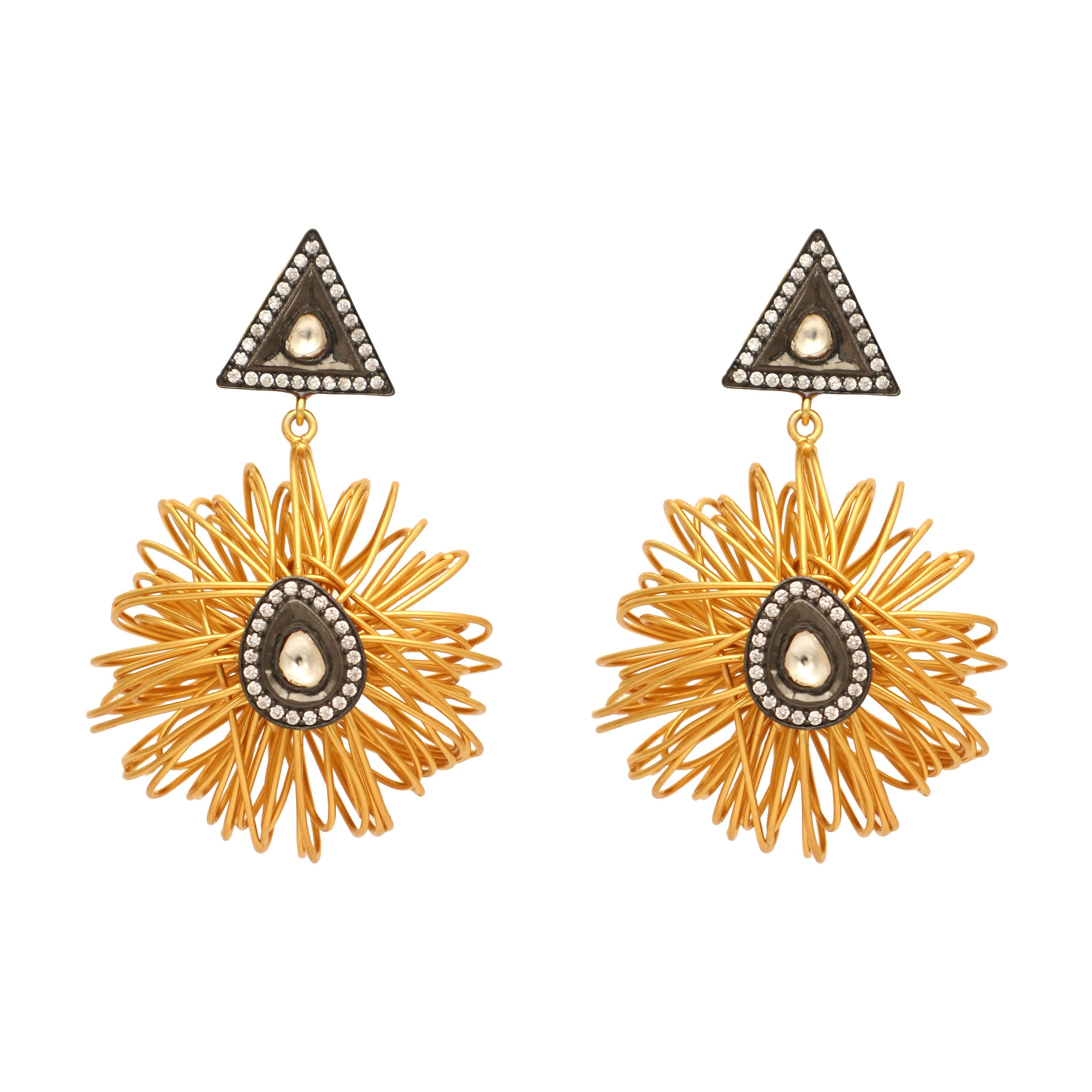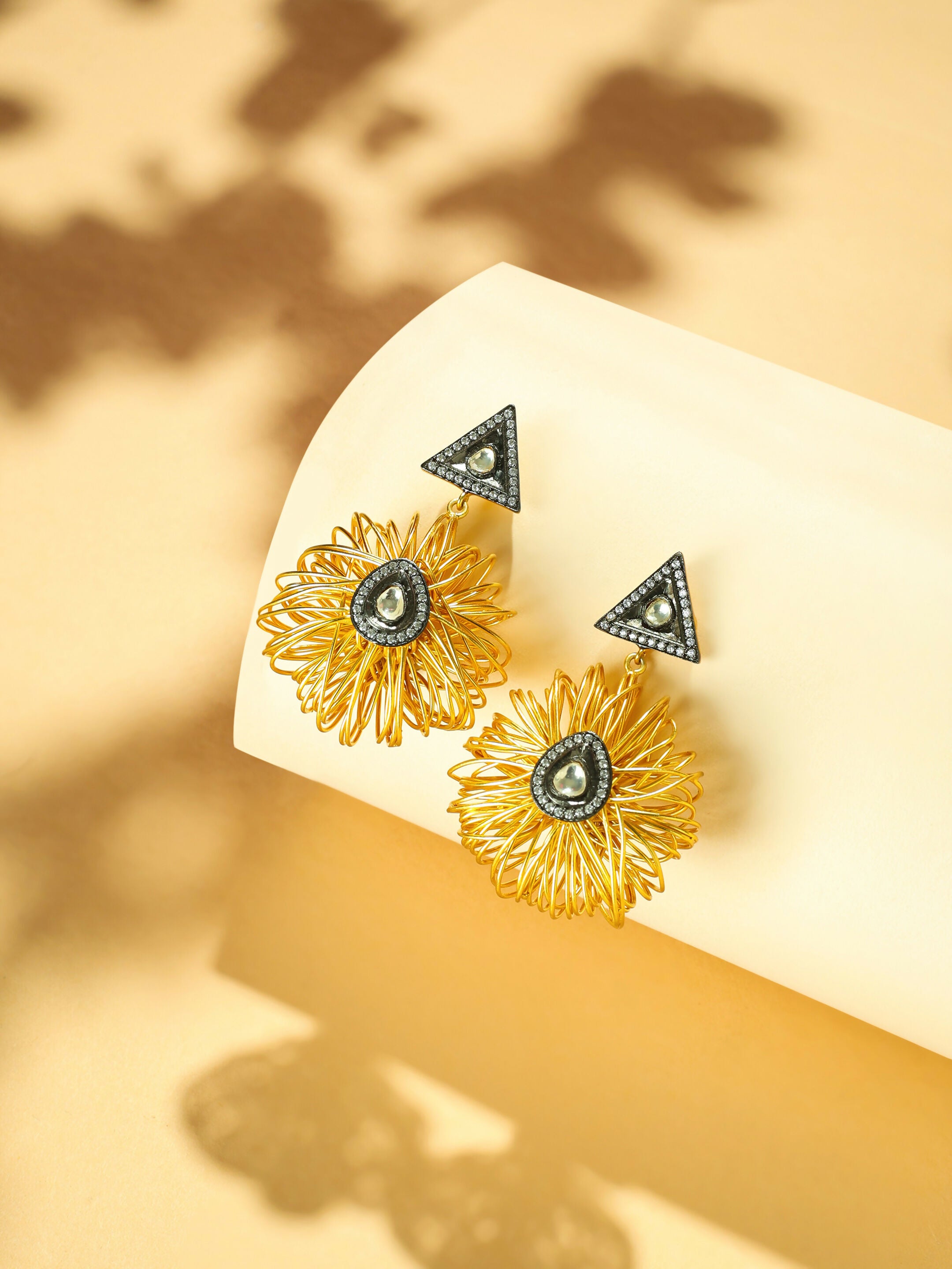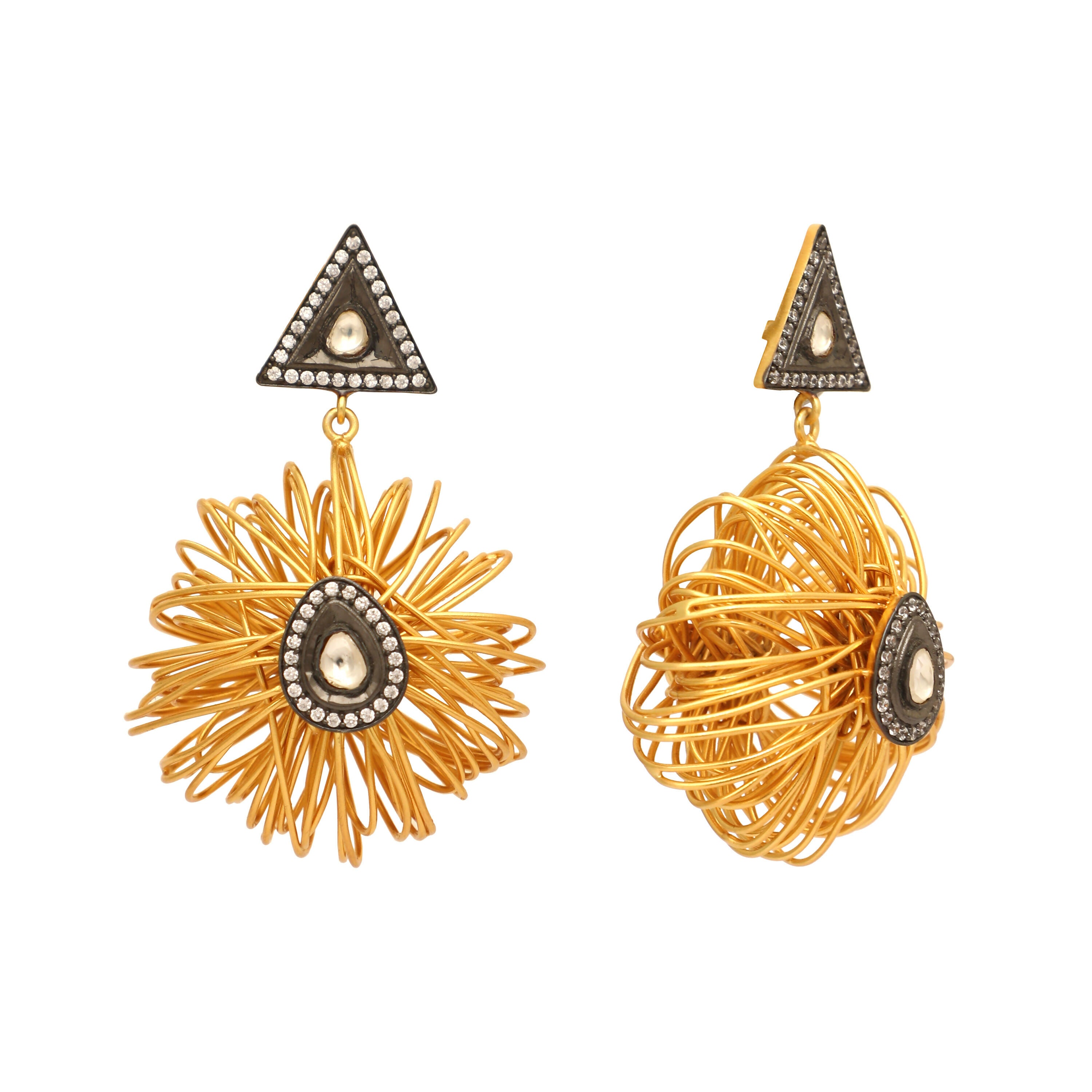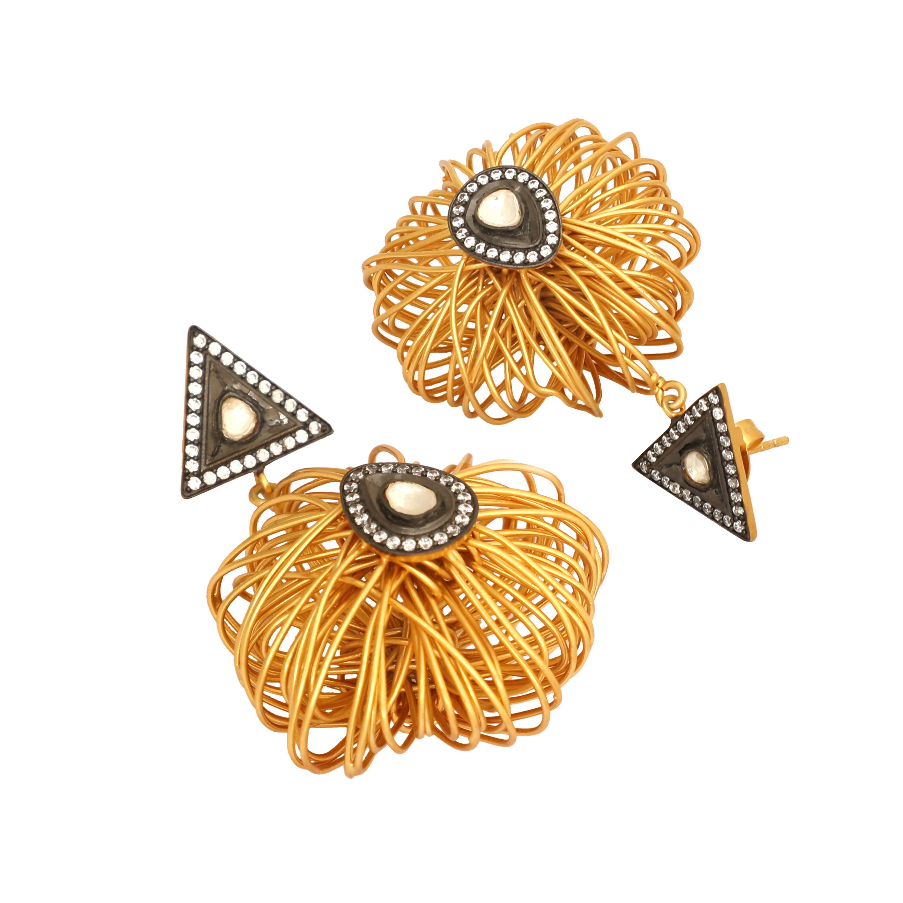 Nuyug 18K Gold-Plated Stones & American Diamond Studded Contemporary Wire Drop EarringsAbout the product:18k Gold-toned contemporary drop earri...