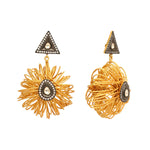 18k Gold-toned contemporary drop earrings, gold-plated, has stones & american diamond studded details. Secured with a post and back closure.
