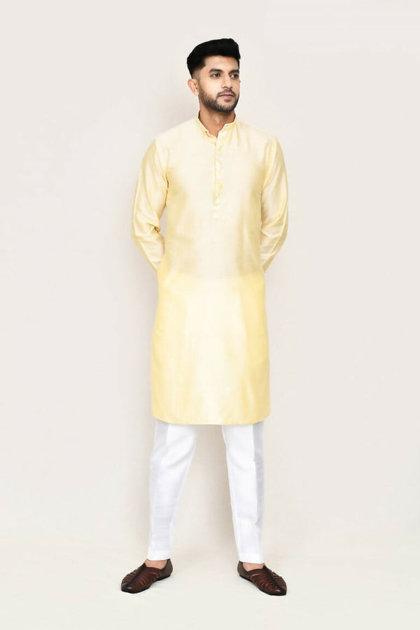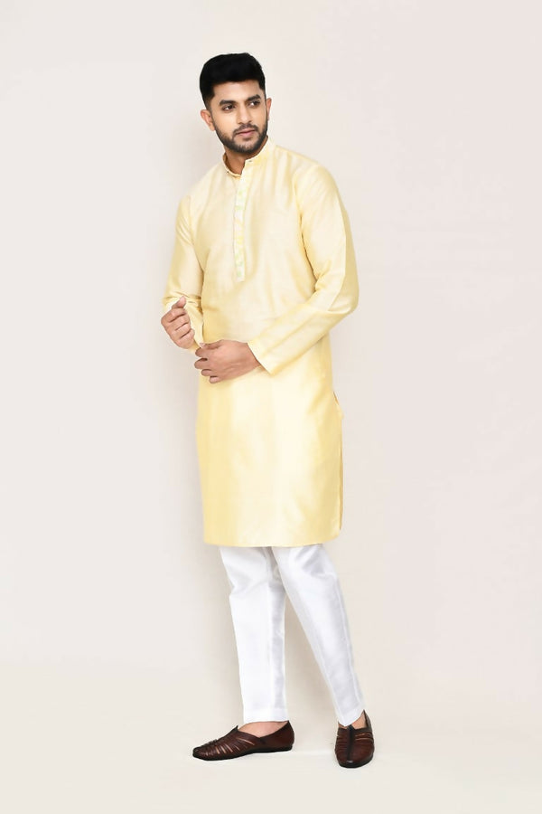 Joban Fashion Cream Colored Art Silk Fabric Kurta With Straight Fit Pant