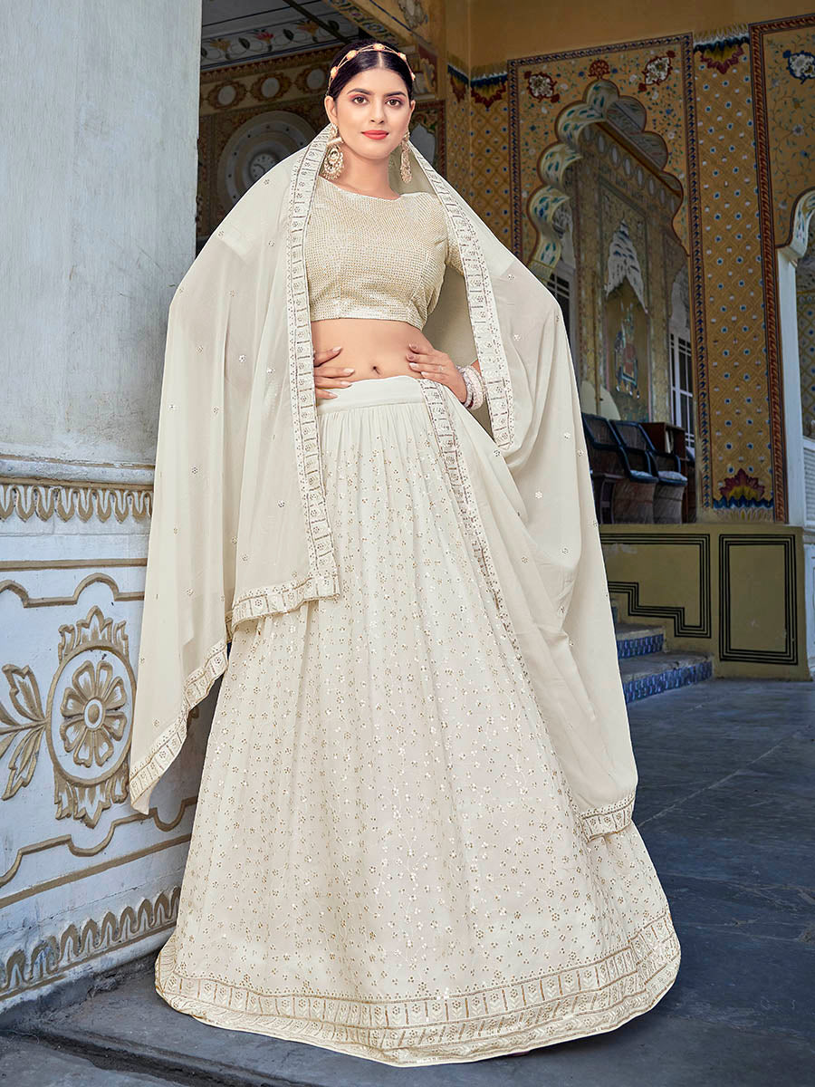 Myra Off White Georgette Embroidered Designer Lehenga Choli - Distacart