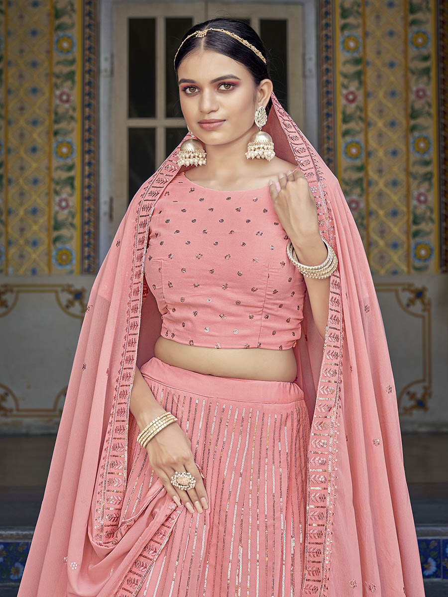 Myra Pink Georgette Embroidered Designer Lehenga Choli - Distacart