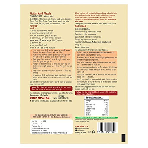 Suhana Mutton Handi Spice Mix 50g Pouch - Pack of 8 - 50 gm - Pack of 8