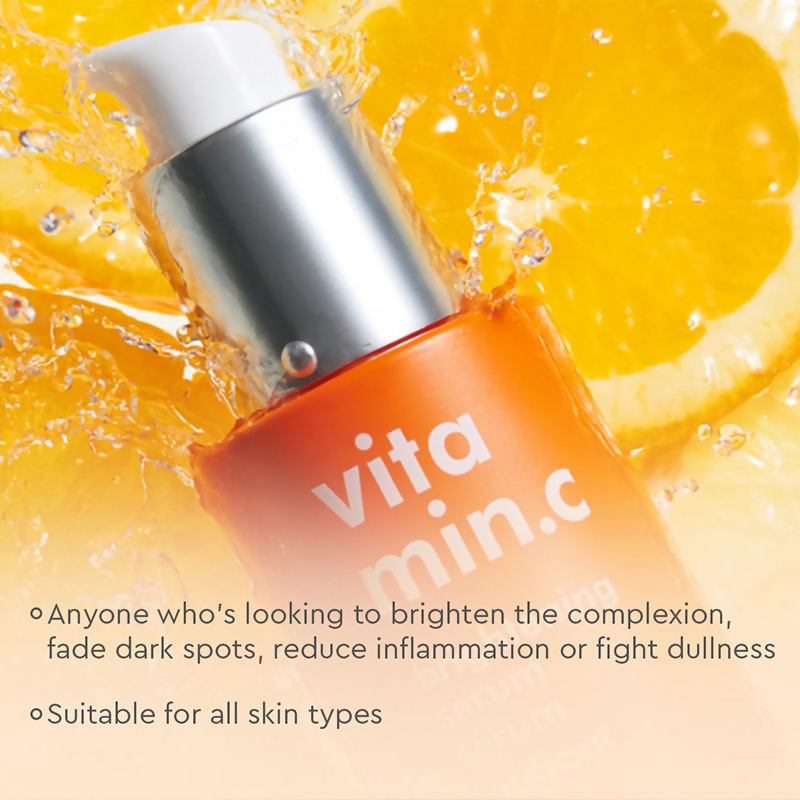 • Look on the bright side of skin care with Vitamin C Brightening Serum - a light, moisturizing, anti-aging serum that boosts skin brightness and restores a healthy glowing complexion. Made with our exclusive Vital Vita Solution that contains a combination of 98% vitamins (including Vitamin C, Niacinamide, and Provitamin B5), it strengthens and protects by creating a shielding moisture barrier on the surface of the skin. The brightening effect of this Vitamin C serum can help improve the appearance of dull, tired-looking skin by fading blemishes, scars, and dark spots for visibly revitalized complexion. Dermatologically tested and free from harmful ingredients. Suitable for all skin types.