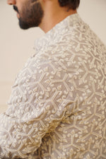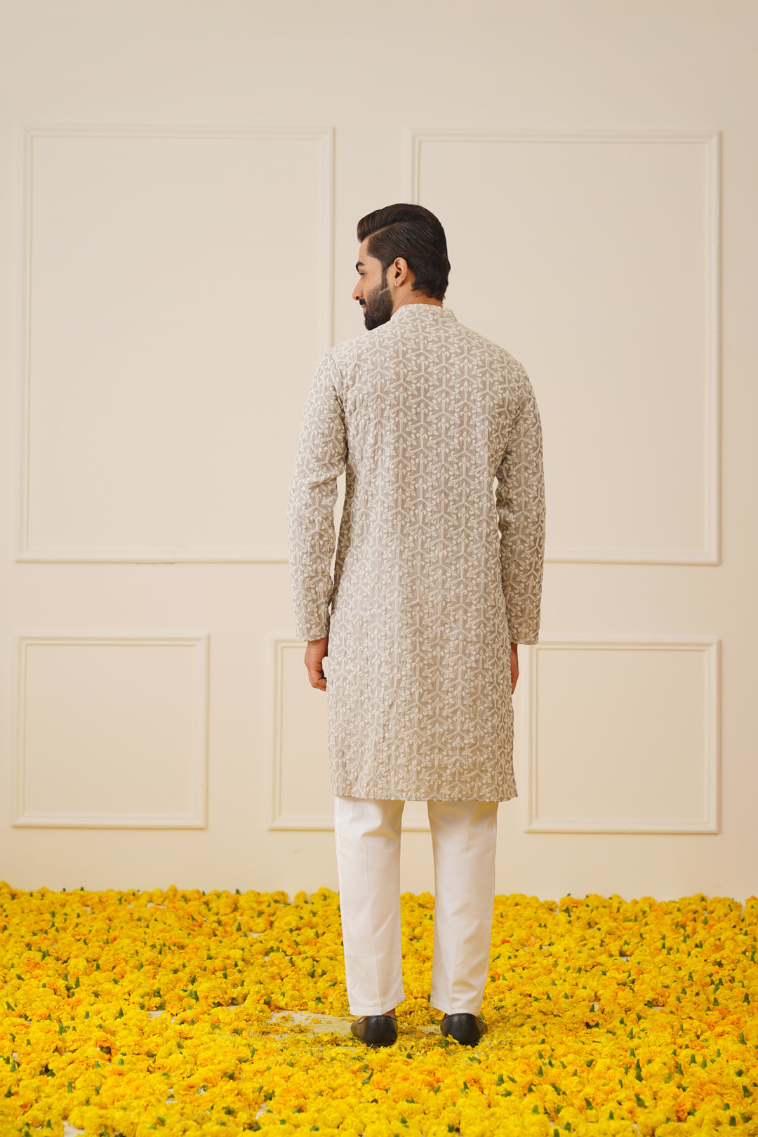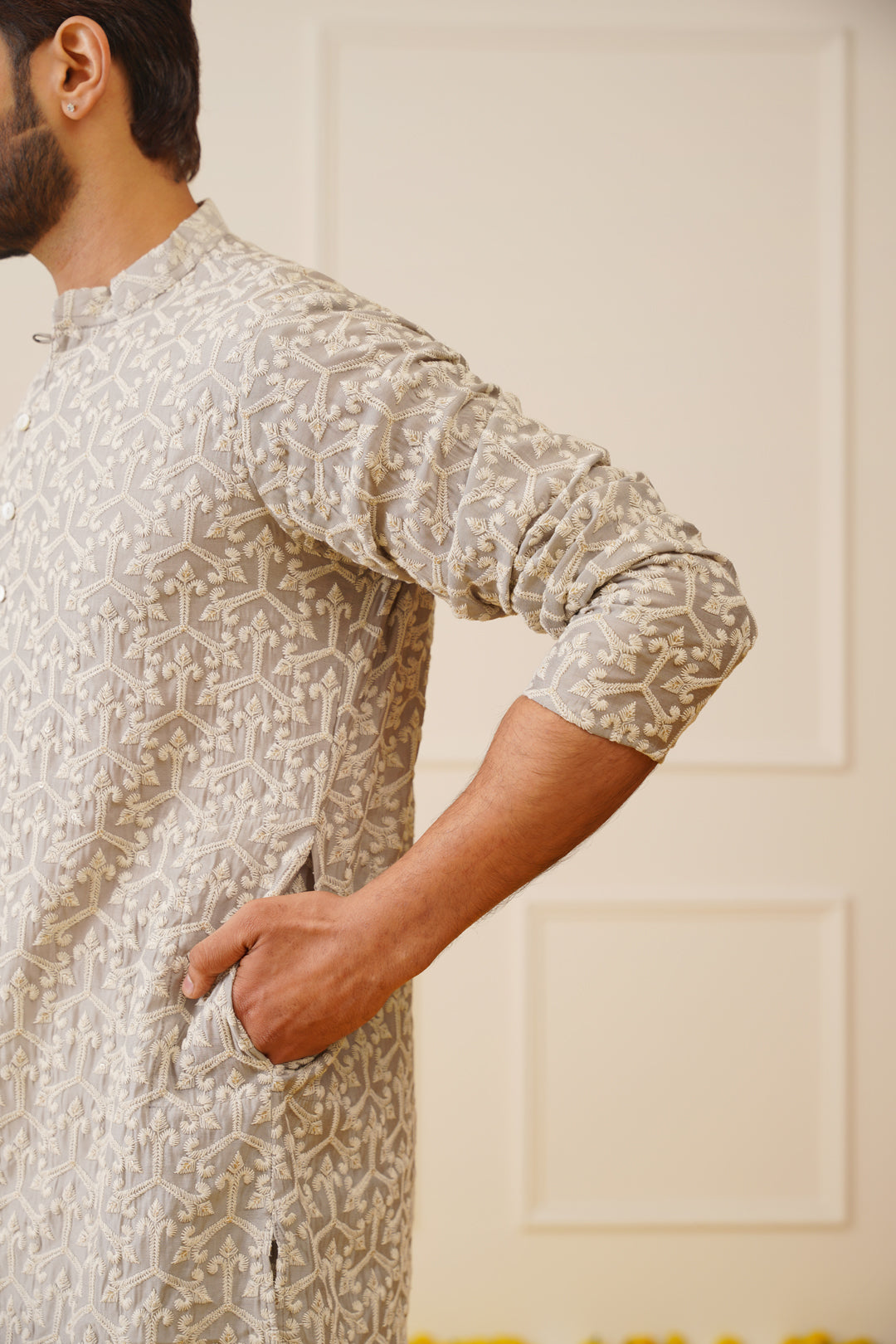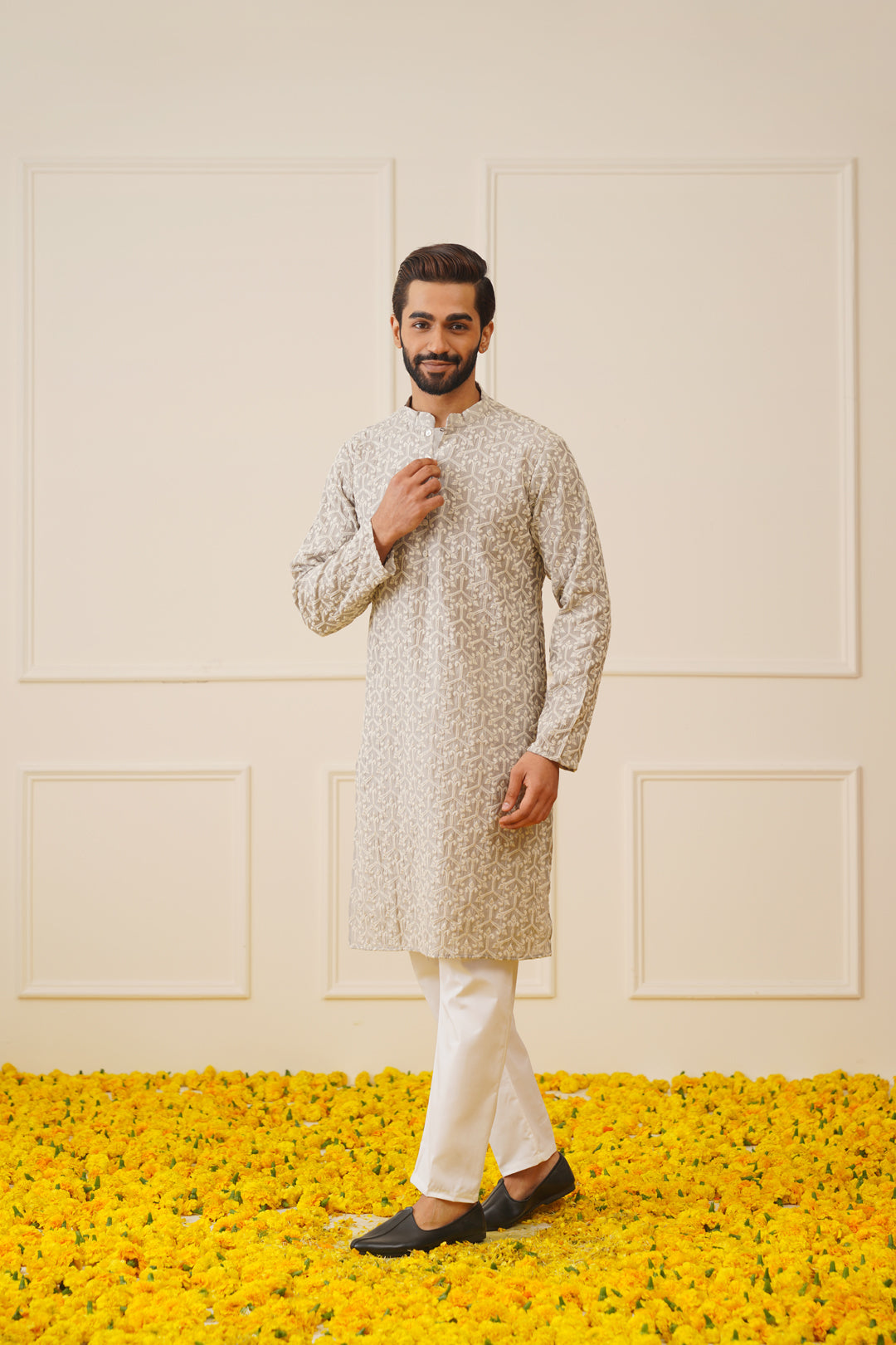 Jompers Men's Chikankari Embroidered Kurta - Grey
