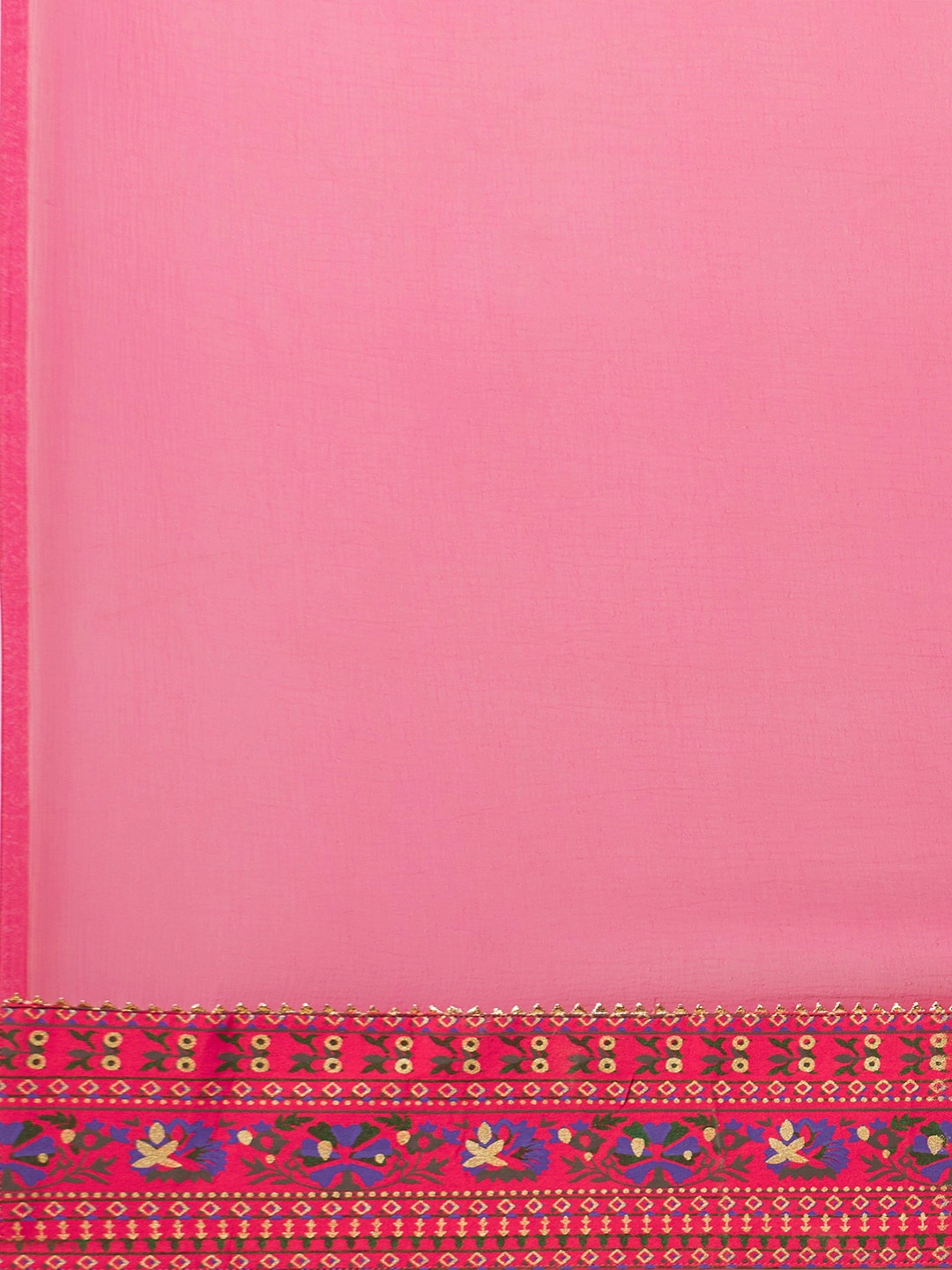 Pink, blue & gold toned yoke design Kurta with Trousers with dupatta