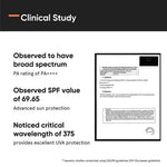 • Combination of new-age, highly-effective, photostable filters - Tinosorb S, Uvinul A Plus, & Uvinul T 150. These are further boosted by Titanium Dioxide