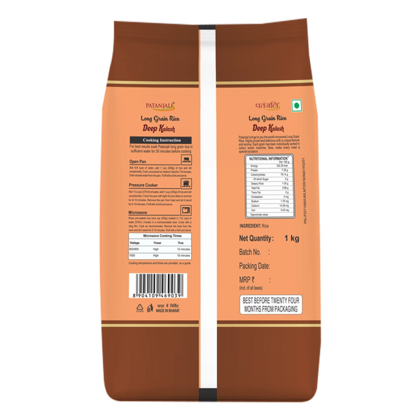 Patanjali Deep Kalash Rice Key Ingredients Rice Direction for Use Cooking Instruction For best results soak Patanjali long grain rice in sufficie...
