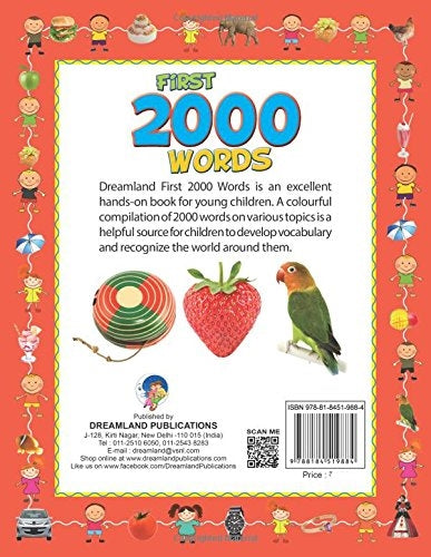 • The perfect introduction for young children to begin understanding the exciting and informative world around us ‘First 2000 Words’ is an excellent book. It focuses to introduce young learners with plentiful words and concepts ranging from fruit to vegetables to weather and disasters through bright colourful images.