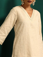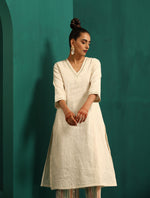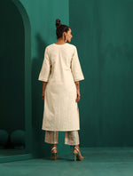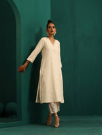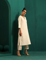 trueBrowns Ivory Tonal Cotton Kurta with Embroidered Pants
