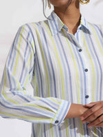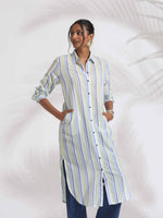 trueBrowns White Cotton Multi Stripe Shirt Kurta Set