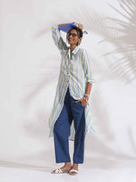 trueBrowns White Cotton Multi Stripe Shirt Kurta SetDescription Elevate your style with this white cotton multi stripe shirt kurta with blue cotton...
