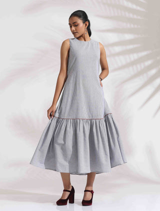 trueBrowns White Cotton Multi Stripe Shirt DressDescription