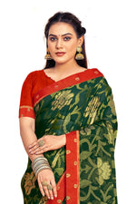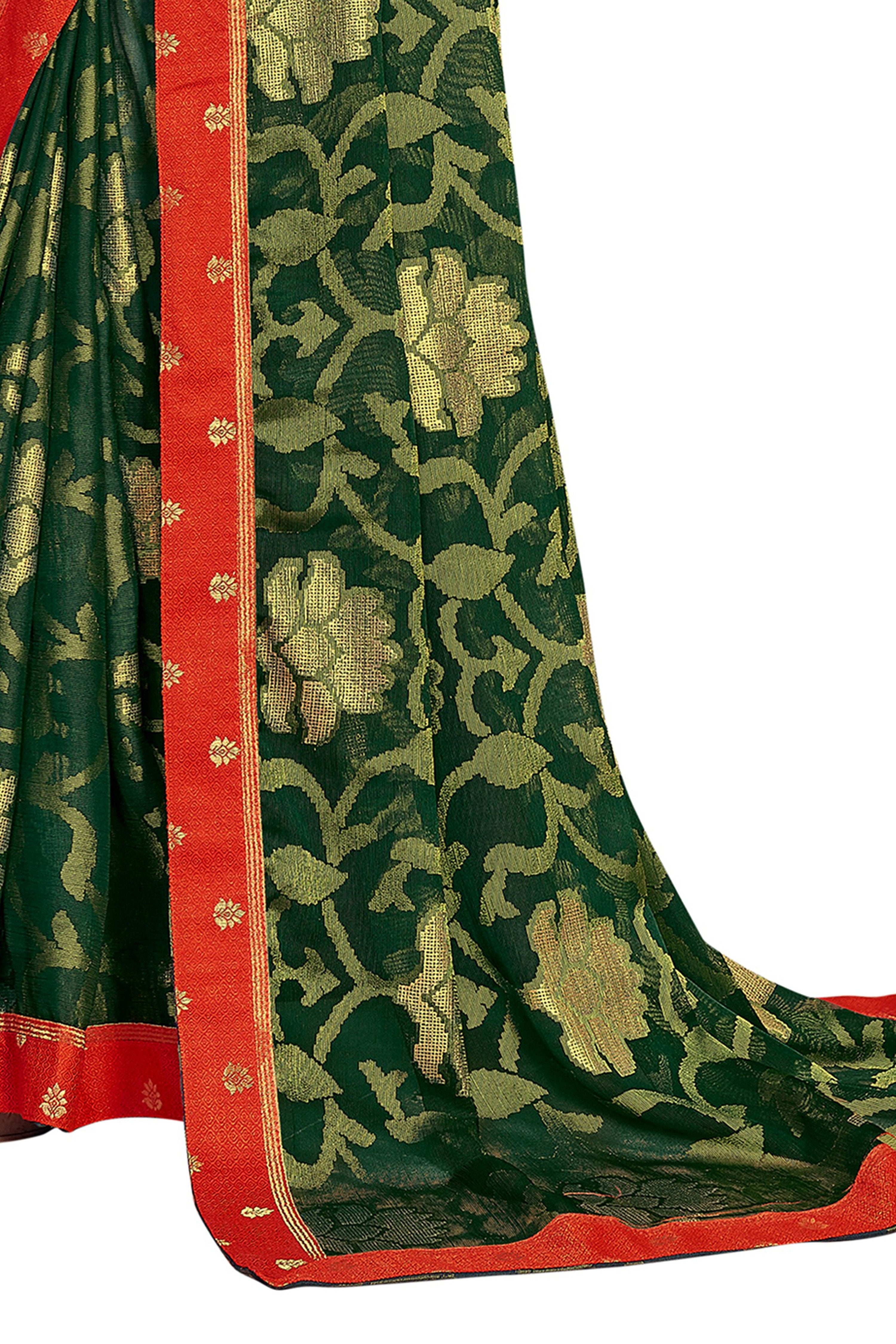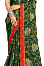 Vamika Dark Green Designer Chiffon Brasso Saree With Exclusive Banarasi Lace