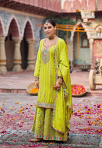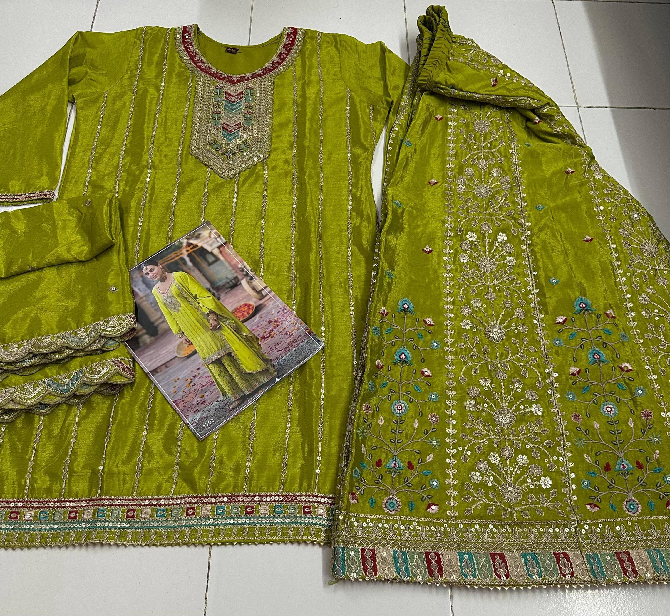 Aarshi Fashions Parrot Green Palazzo Wedding Suit