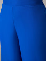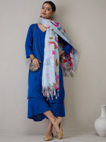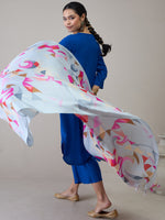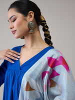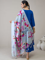 InWeave Ink Blue V Neck Flared Kurta Grey Dupatta Set