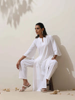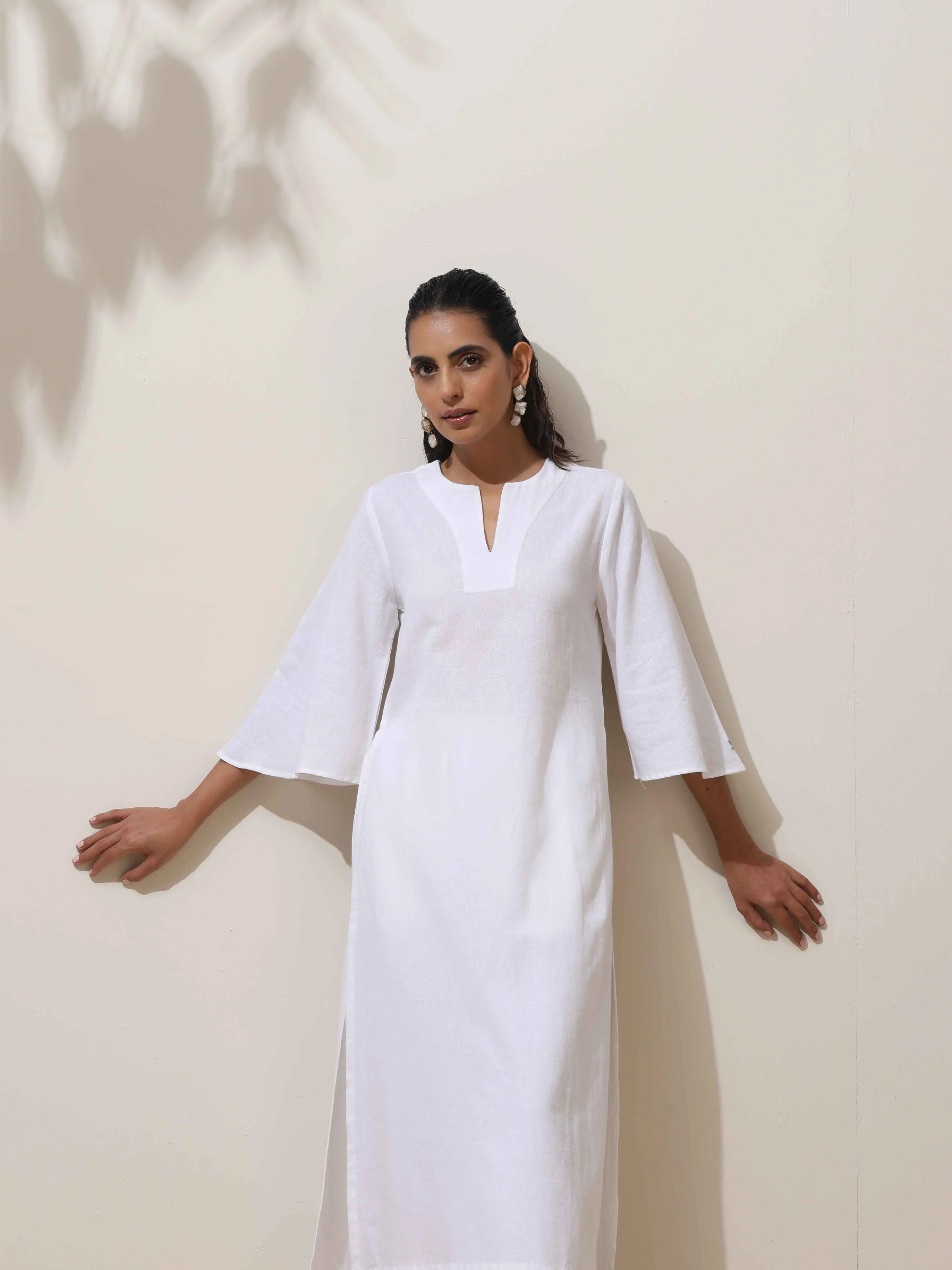trueBrowns White Cotton Linen Kurta Pant SetDescription Elevate your style and step into effortless elegance with white high-slit kurta paired with...