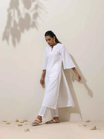 • Elevate your style and step into effortless elegance with white high-slit kurta paired with white pants, thoughtfully designed to blend modern style with everyday comfort. Perfect for casual gatherings, or workwear, this ensemble adds a touch of sophistication to your wardrobe.