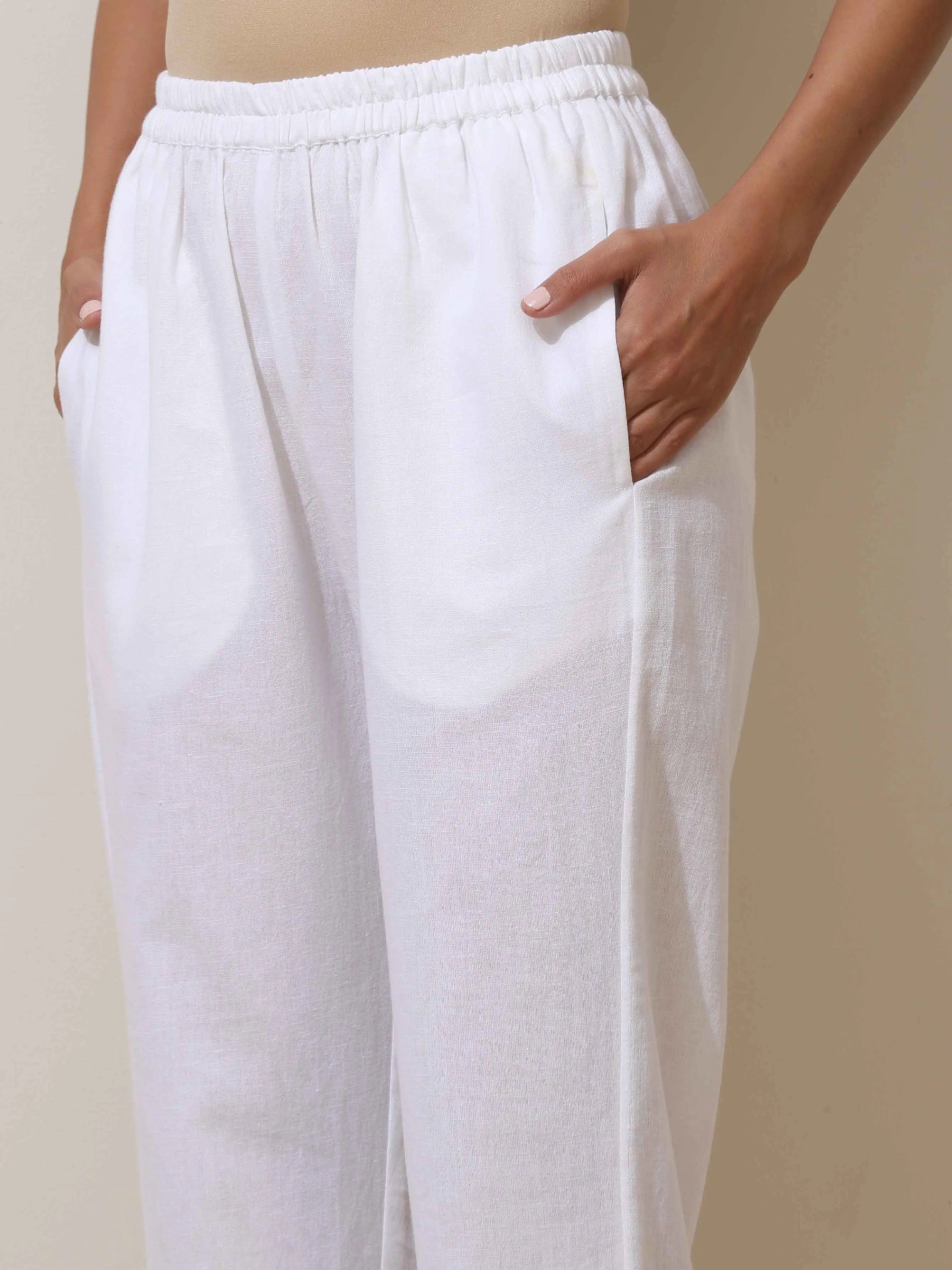 trueBrowns White Cotton Linen Kurta Pant Set - XS