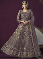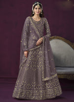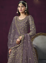 Vegaa Fashion Designer Purple Net Embroidery Anarkali Suit