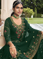 Vegaa Fashion Green Georgette Embroidery Designer Sharara Suit