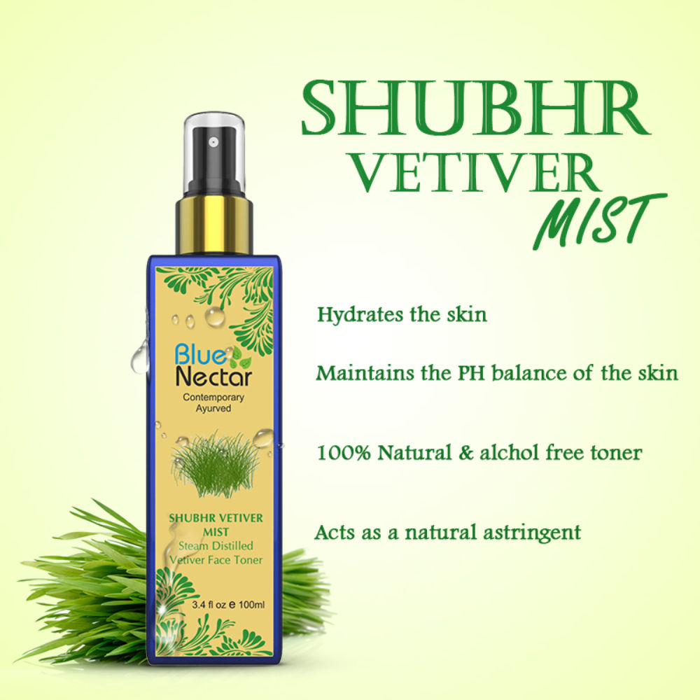 Blue Nectar Shubhr Steam Distilled Vetiver Toner Water & Face Tonic Mist: 100 ml Blue Nectar Vetiver Toner Water & Face Tonic Mist is deriv...