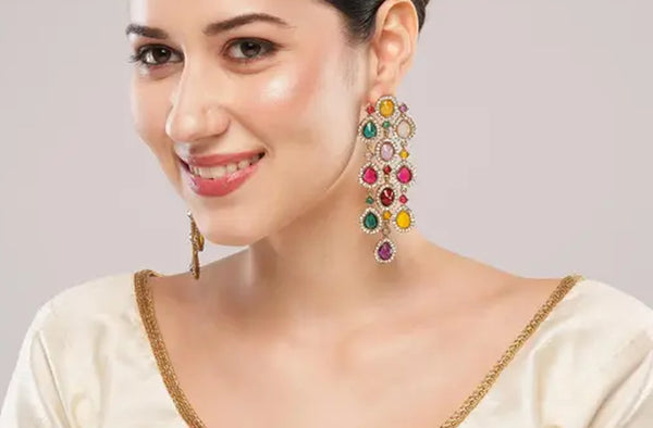 Jewel City Luxurious Multicolor Cascade Earrings - Crystal-Embellished Statement Earrings for Wedding & Festival GlamourMake a regal statement ...