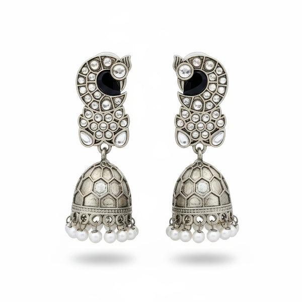 JS Fashion Clustered Pearl Fancy Oxidised Silver Jhumka Earrings for Women & Girls