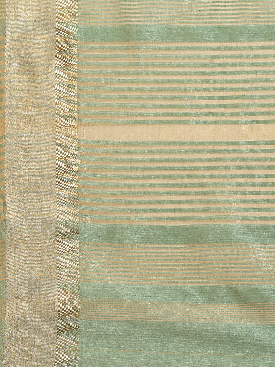 Kalini Green & Golden Solid Woven Design Saree - Distacart