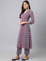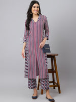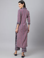 Khushal K Striped Shawl Collar Straight Kurta with Palazzos
