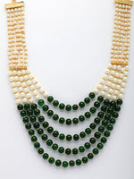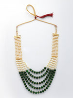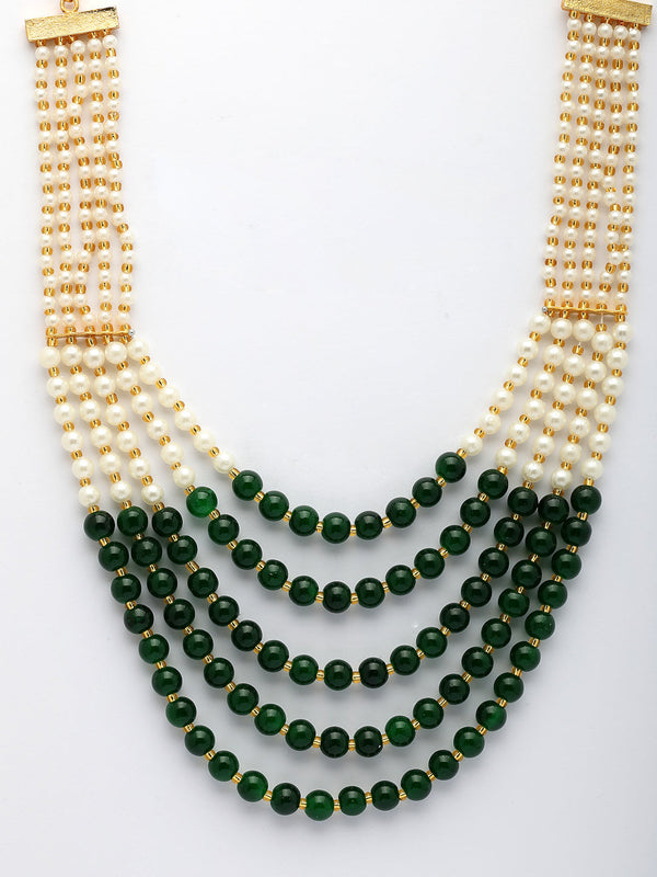 NVR Women Handcrafted Green & White Beaded Layered Necklace