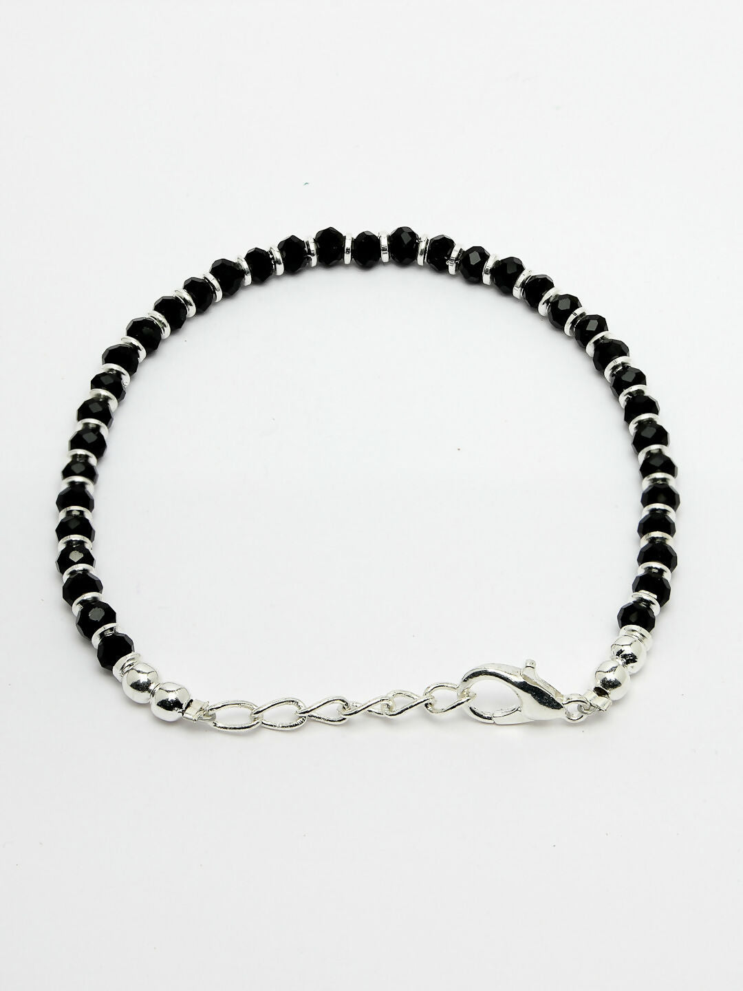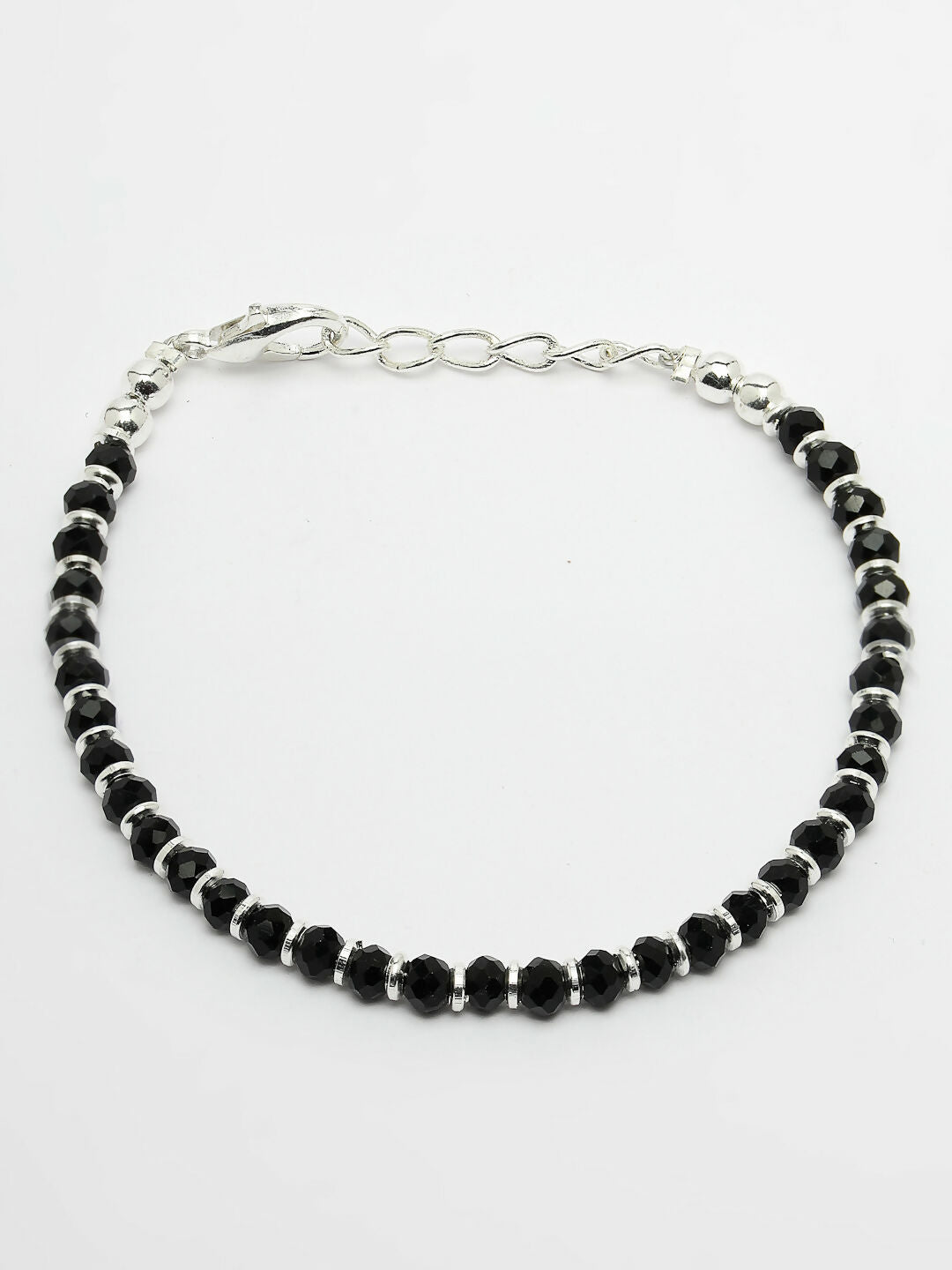 NVR Women Silver-Toned Black Brass Rhodium-Plated Link Bracelet - Distacart