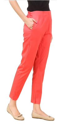 PAVONINE Gajri Color Stretchable Cotton Lycra Fabric Pencil Pant For WomenAdditional Information: Highlights: Stretchable, Two Side Pockets an...