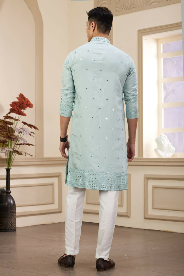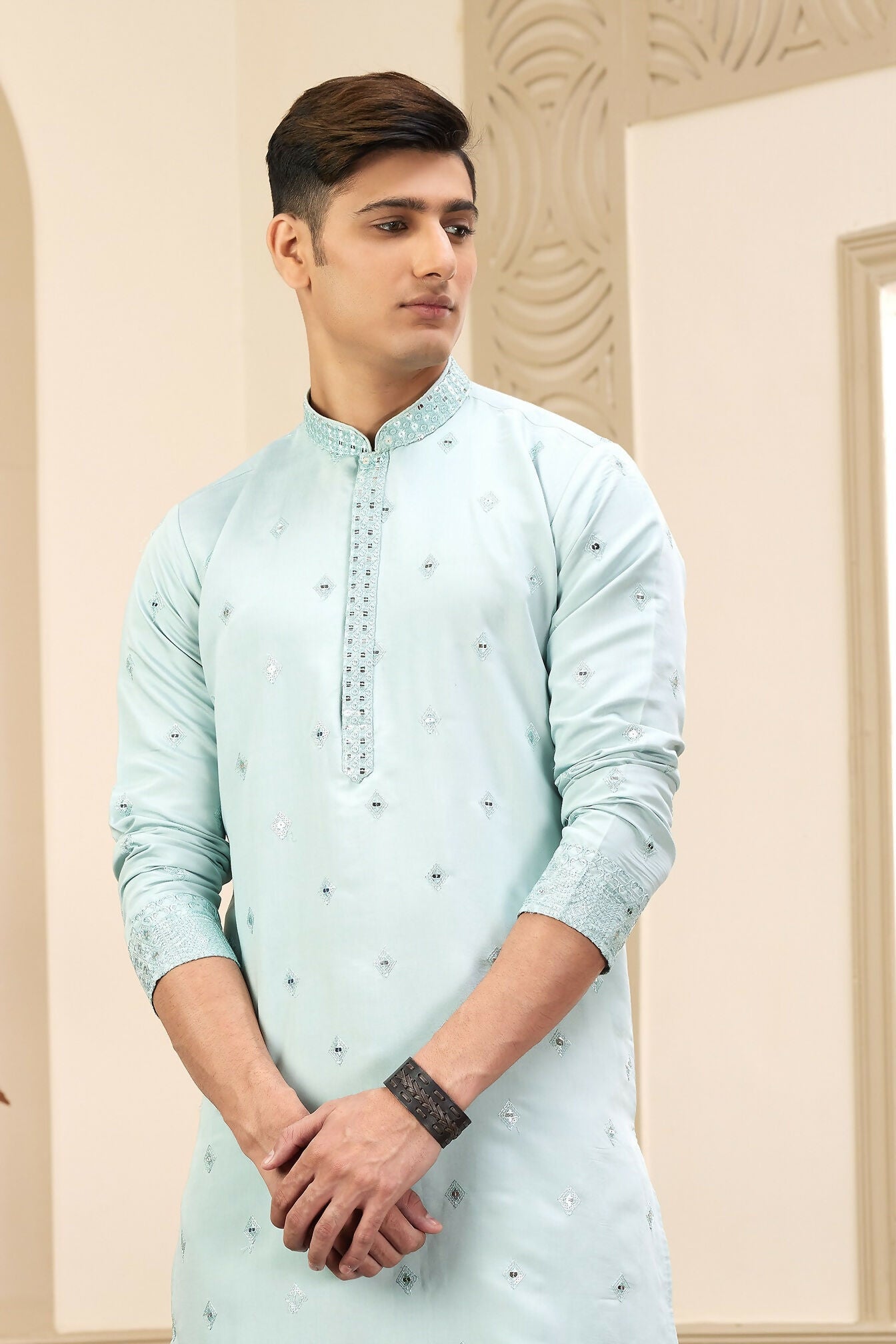 Elevate your ethnic style with this elegant kurta pajama set, crafted from premium fabric for all-day comfort. Featuring a classic silhouette, fine stitching, and traditional detailing, it's perfect for festive occasions, weddings, or casual gatherings. Pair with mojaris for a complete, sophisticated look that blends tradition with modern charm.