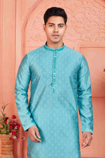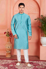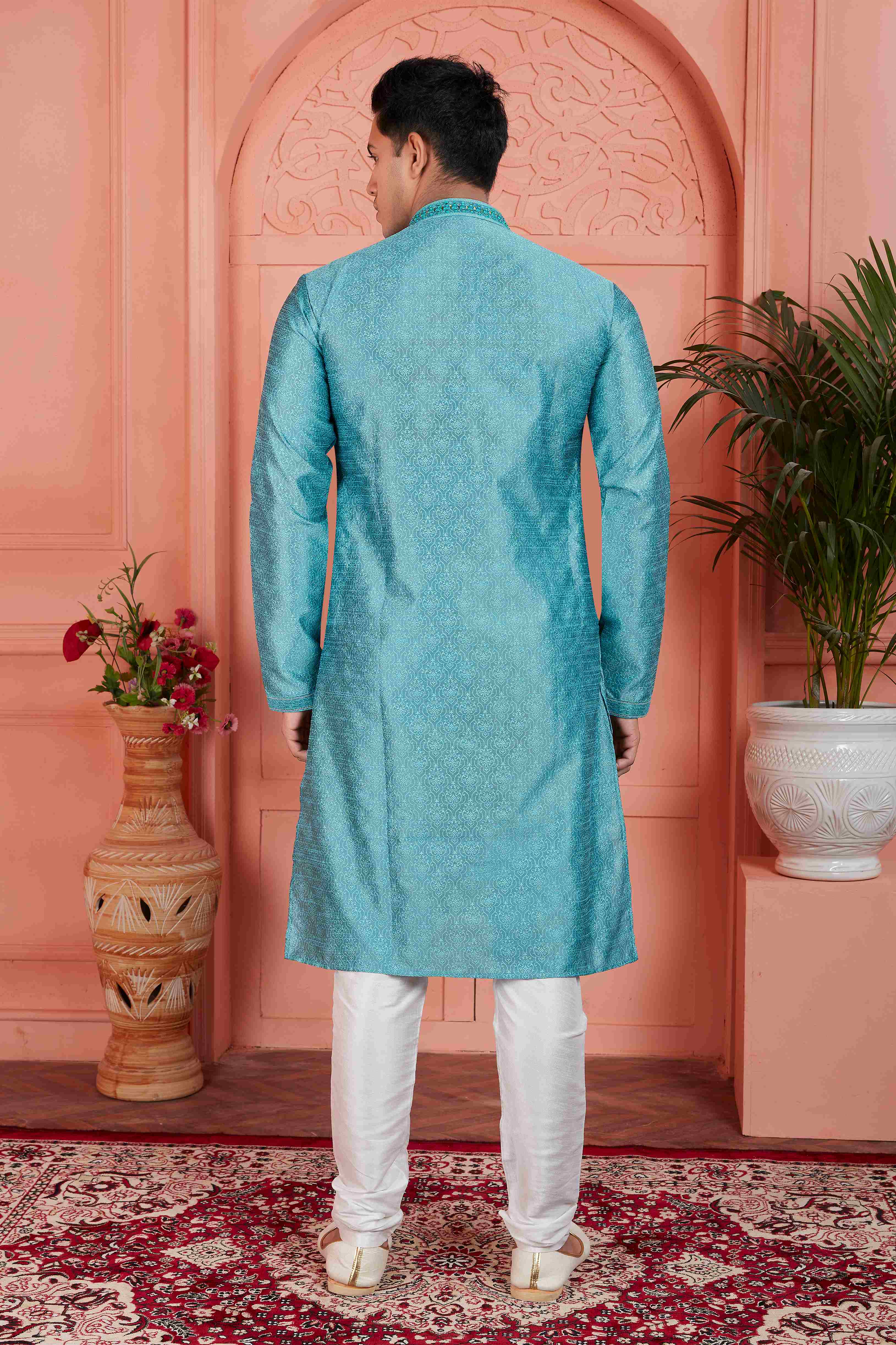 Raivat Ethnic Jacquard Silk Brocade Mirror and Pintux Work Kurta Pyjama In Blue ColourAbout The productEnhance your traditional wardrobe with this ...
