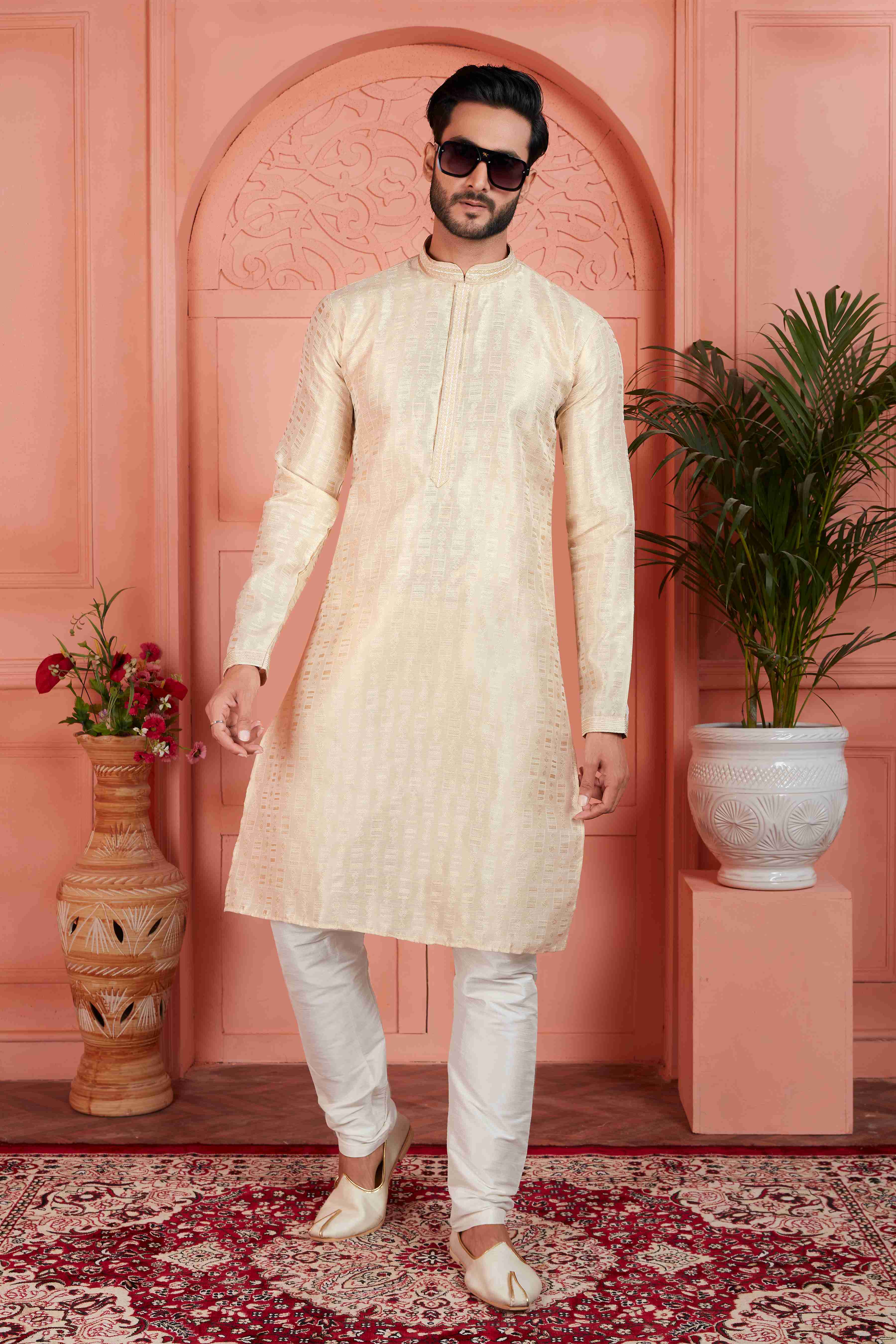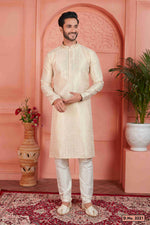 Raivat Ethnic Jacquard Silk Brocade Pintux Work Kurta Pyjama In Cream ColourAbout The productEnhance your traditional wardrobe with this stylish ku...