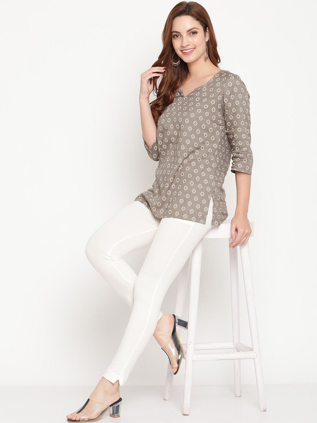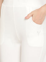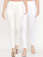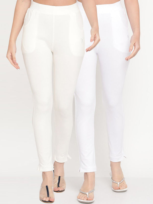 Pack of 2 solid comfort-fit ankle-length leggings in off-white and white, each has an elasticated waistband, 2 pockets, and slip-on closure