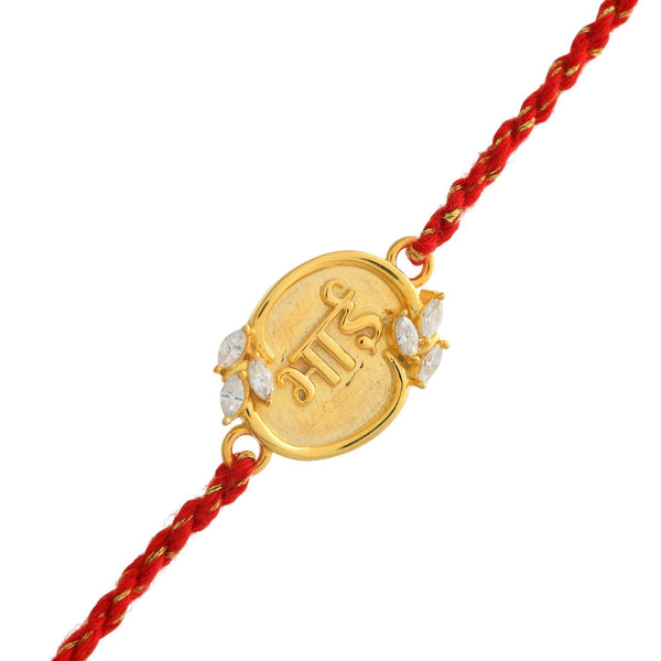 • Celebrate the special bond between siblings with the exquisite trueBrowns Gold-Plated Sterling Silver "Bhai" Floral Rakhi adorned with American Diamond.