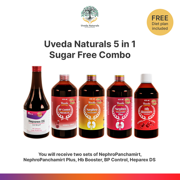 Uveda Naturals 5-in-1 Sugar Free Combo2 Months Set Combo Contains: 1. Uveda Naturals Heparex DS Sugar Free - 450 ml - 4 Quantity 2. Uveda Naturals ...