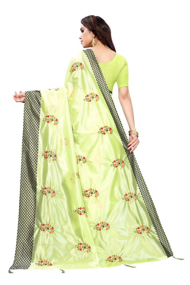 Vamika Parrot Green Crepe Embroidery Saree (Nirali Pista) And Its Specifications: Work: Embroidery Base Fabric: Crepe Fabric Saree: Crepe Fabri...