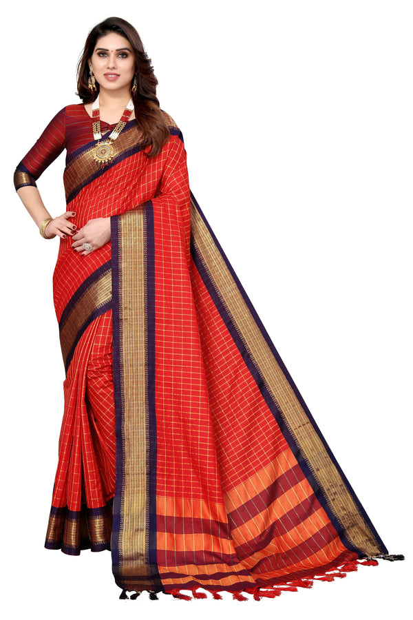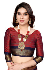 Vamika Weaving Red Cotton Silk Saree