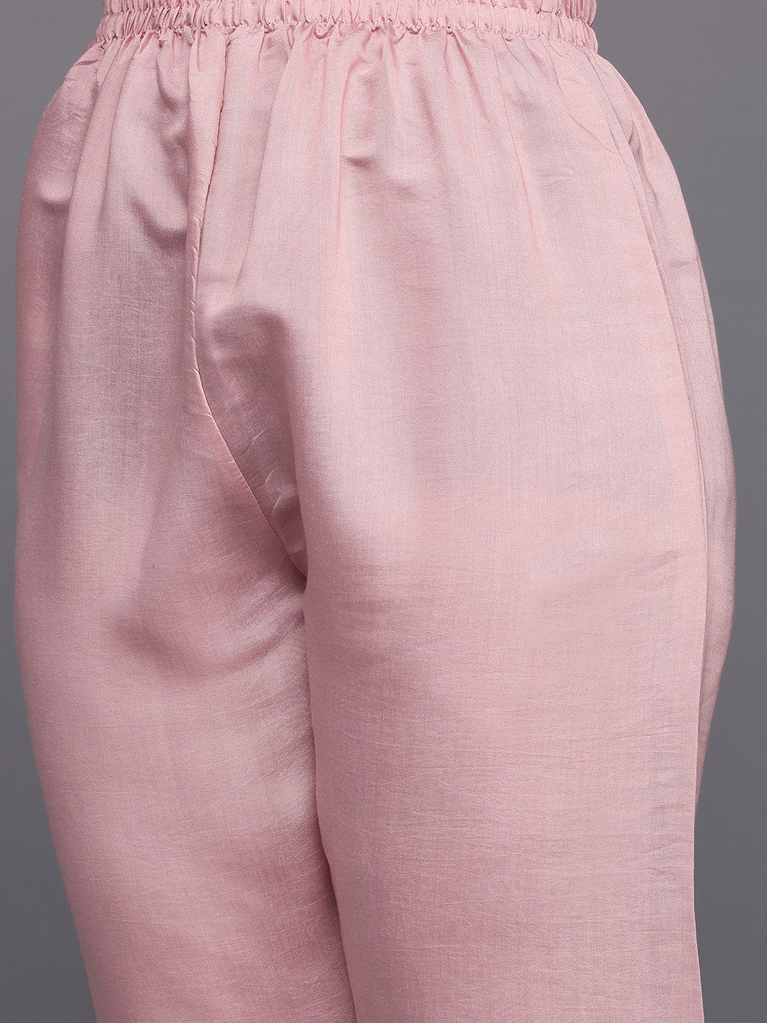 Varanga Women Pink Silk Floral Printed Beads And Stones Embellished Kurta Set With Dupatta