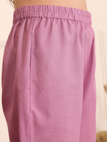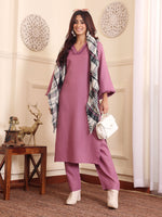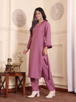 Purple Fringed Detailed V Neck Straight Kurta With Three Quarter Sleeves And Straight Pant