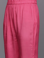 Pink Bandhani Printed Round Neck With Embroidered Yoke, Three Quarter Sleeves With Triangular Gota Lace Hem, Straight Kurta With Side Slits Paired With Tonal Bottom And Bandhani Printed Dupatta With Four Side Gota Taping